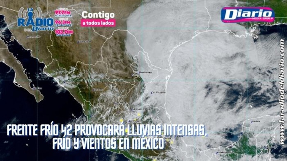 El frente frío 42, en combinación con una masa de aire ártico, provocará en México descenso de temperaturas, lluvias intensas, vientos fuertes y posible caída de nieve en zonas montañosas.